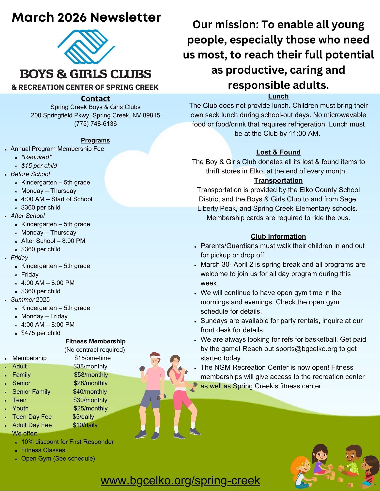 The NEW Nevada Gold Mines Recreation Center, proudly operated by the Boys & Girls Club of Northeastern Nevada, is NOW OPEN TO EVERYONE IN THE PUBLIC! Enjoy the fitness center, game room, teen room, gymnasium, many pools, splash area and more! You can purchase your membership today at 602 Country Club Dr. in Elko (behind the old pool) or call 775-738-2759!